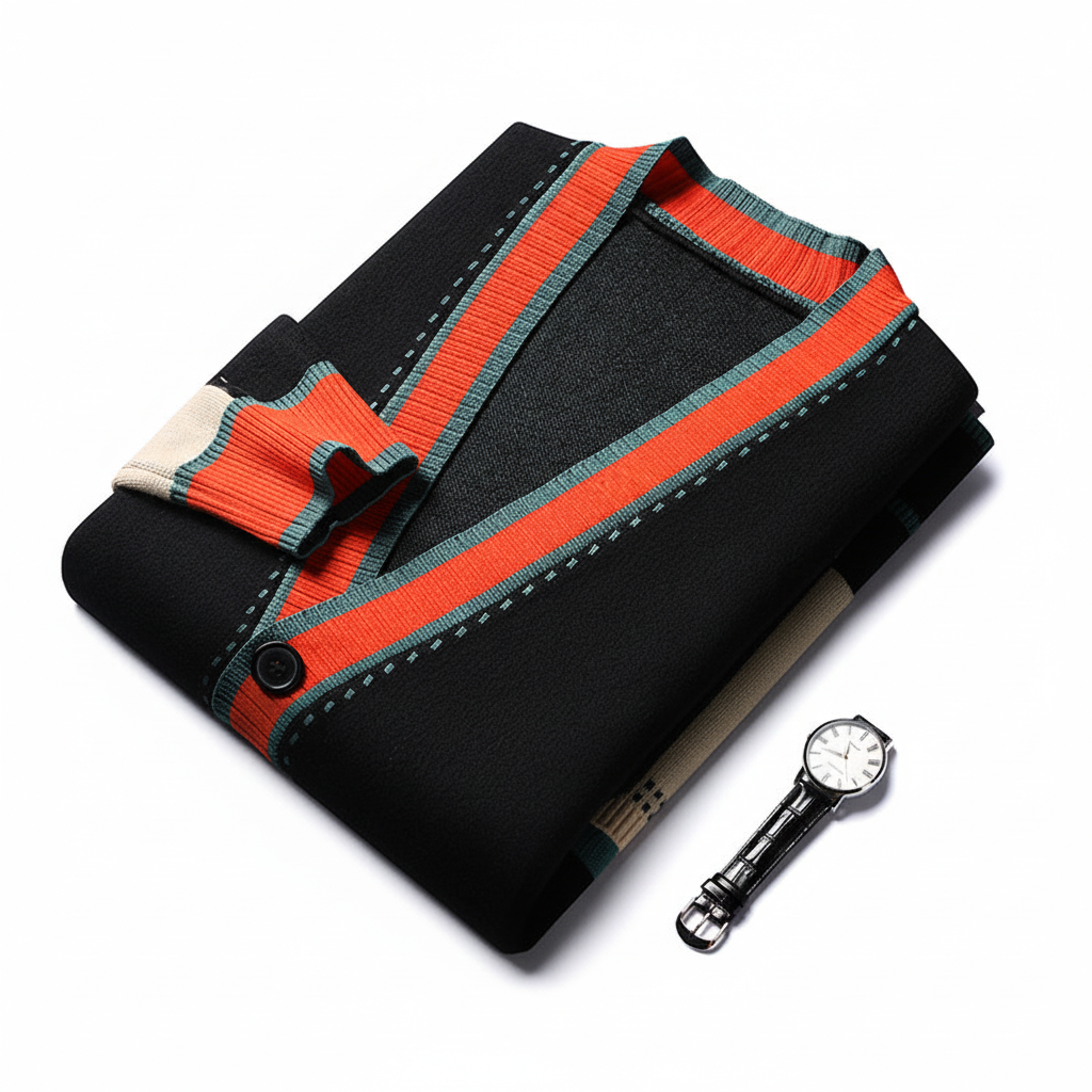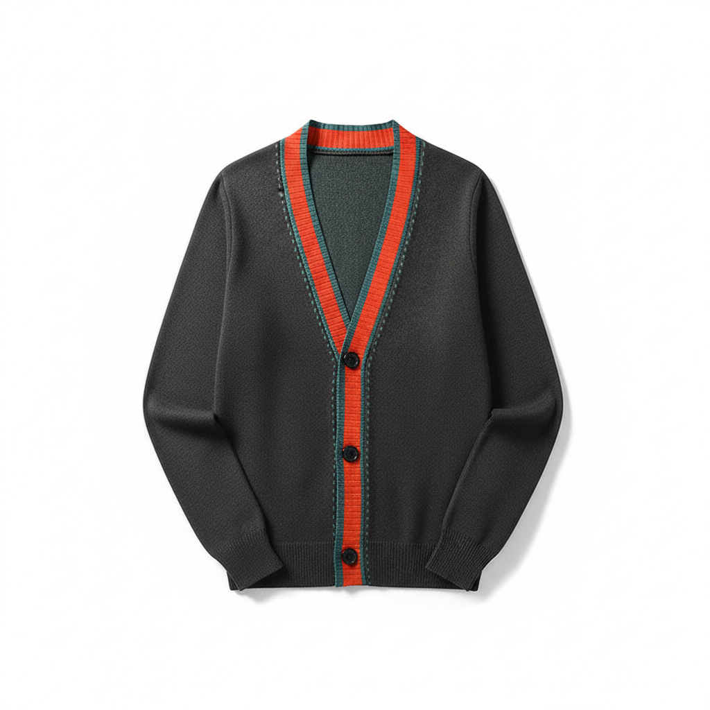 The Sloane features a traditional button-up front equipped with durable fastenings and integrated stitched patch pockets for practical daily use. The design is elevated by eye-catching contrasting piping and color trim that defines its silhouette, while precision rib-knit cuffs and a matching ribbed hem ensure the garment retains its shape and provides a secure, snug fit.