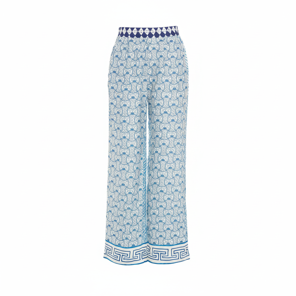 Featuring a straight-cut leg and an oversized drape, Luy is engineered for versatility, making it an excellent choice for vacation wear, resort styling, or elevated daily outfits. The lightweight satin material provides a smooth touch against the skin and an elegant sheen that enhances the intricate print detail.