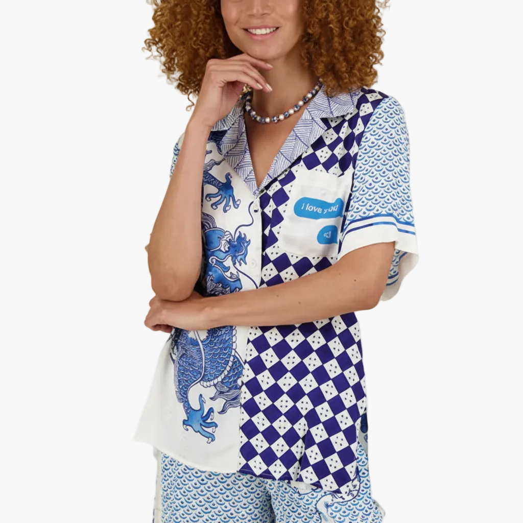 Luy Silk Satin Dragon Print Set is a sophisticated two-piece ensemble for women crafted from premium, flowing silk satin fabric. This coordinate set features a striking traditional dragon motif, offering a high-fashion aesthetic that blends mythical artistry with modern loungewear luxury.